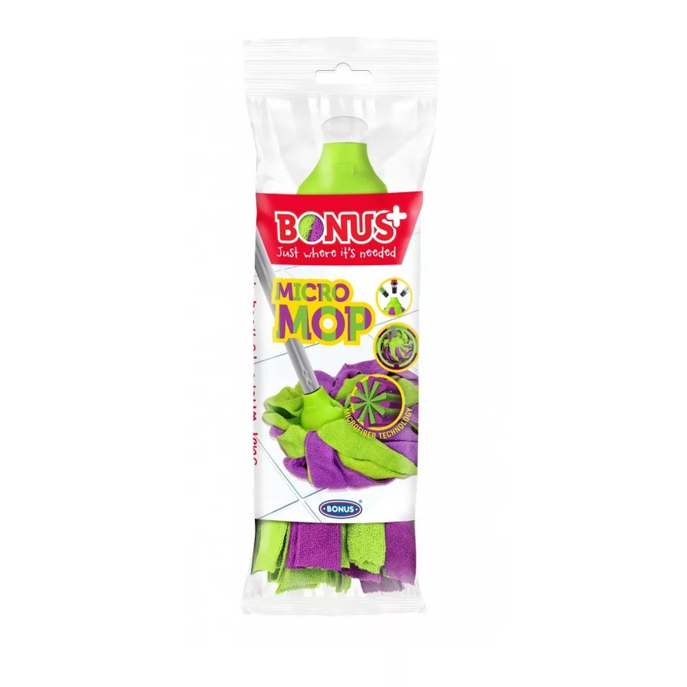 A MicroMOP felmosófej ideális választás a kényes, beltéri padlóburkolatok, különösen a laminált felületek tisztításához. Prémium anyagának és extra erős nedvszívó hatásának köszönhetően hatékonyan védi a padlót a túlzott nedvesség okozta sérülésektől, és villámgyors száradást garantál. Az ultra finom mikroszálas szerkezet fizikailag távolítja el a felületi baktériumokat, így vegyszer nélkül is higiénikus környezetet teremt – tökéletes megoldás kisgyermekes vagy háziállatos otthonokba.