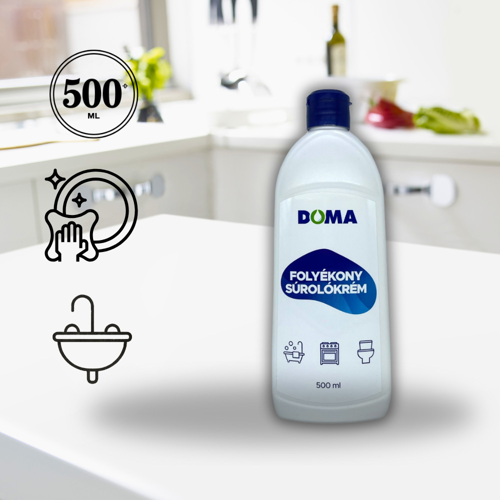 Foltok? Vízkő? Makacs szennyeződések? A DOMA folyékony súrolókrém az egyik legsokoldalúbb megoldás, ha karcmentesen szeretnéd ragyogóvá varázsolni a háztartás nehezen kezelhető részeit.