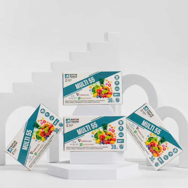 A Natur Tanya® MULTI 55 egy prémium minőségű, fermentált multivitamin komplex, amely 36 féle fermentált, liofilizált zöldséget, gyümölcsöt és gyógynövényt, valamint 19 féle vitamint és ásványi anyagot tartalmaz.